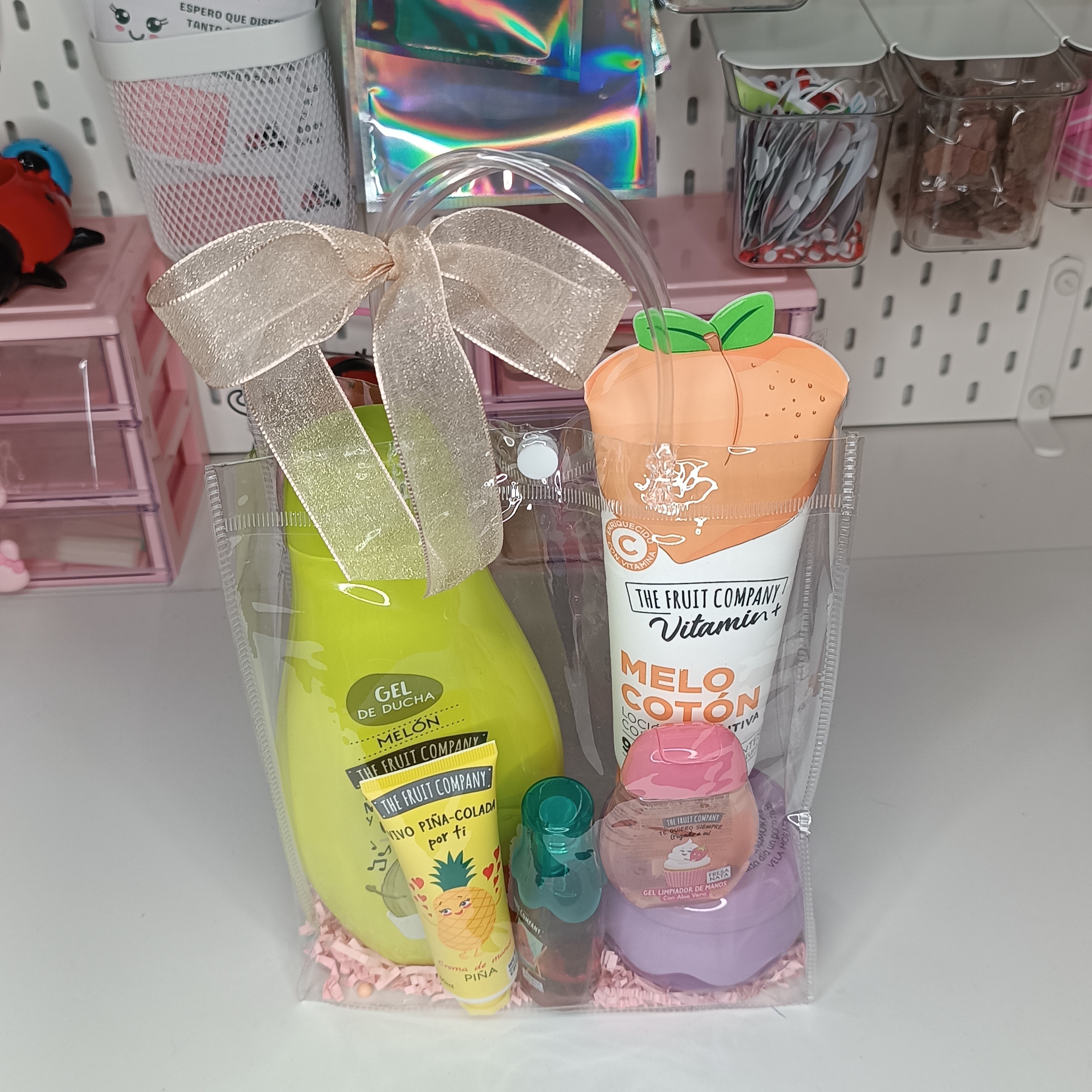 Regalo de set de cosmetica de The Fruit Company con mezcla de aromas. Los productos incluidos son iguales a los de la foto; puede cambiar el aroma o el gel de manos que se puede cambiar por aceite labial. Para todo ello debeis de contactarme al Whatsapp.